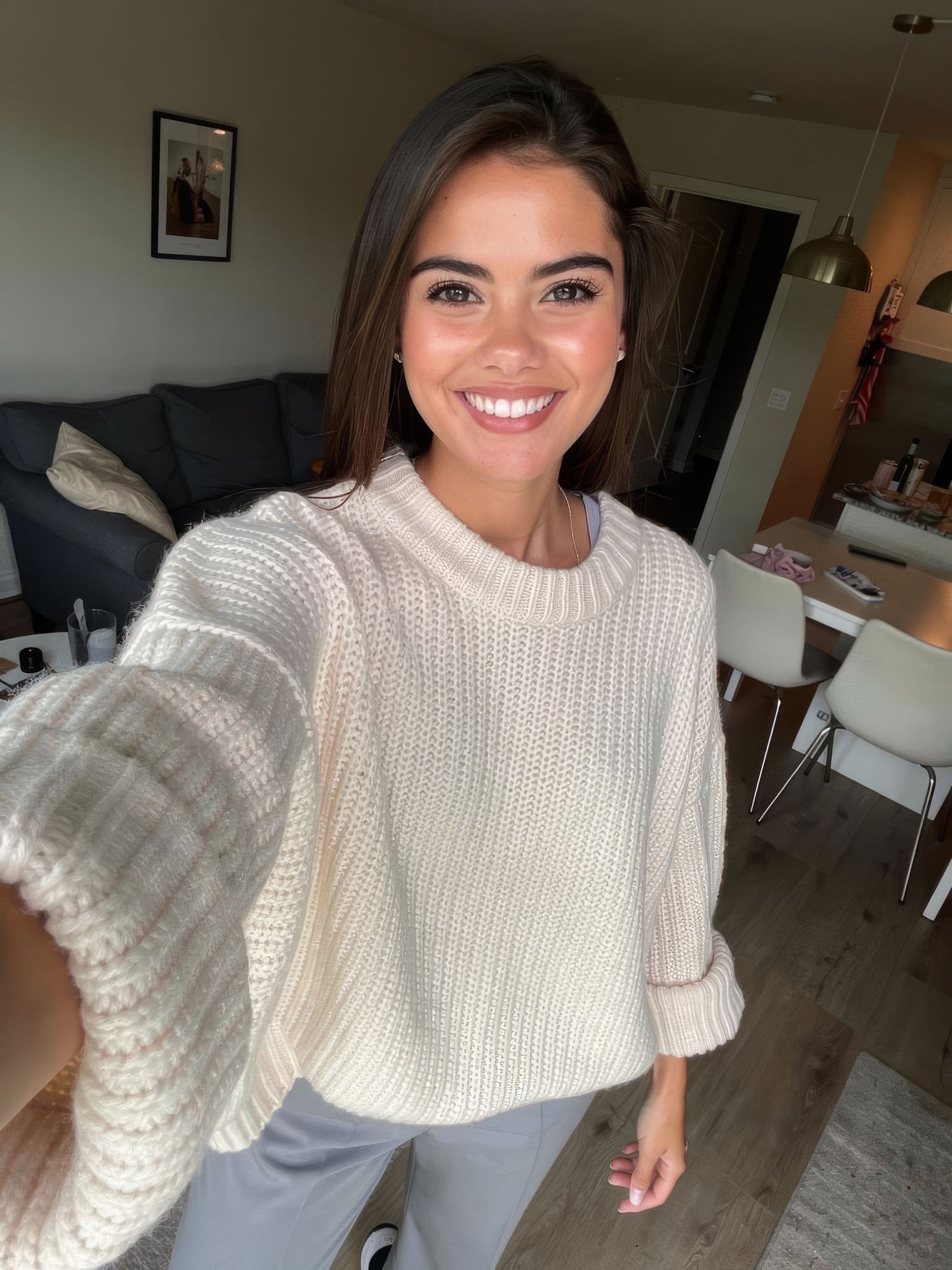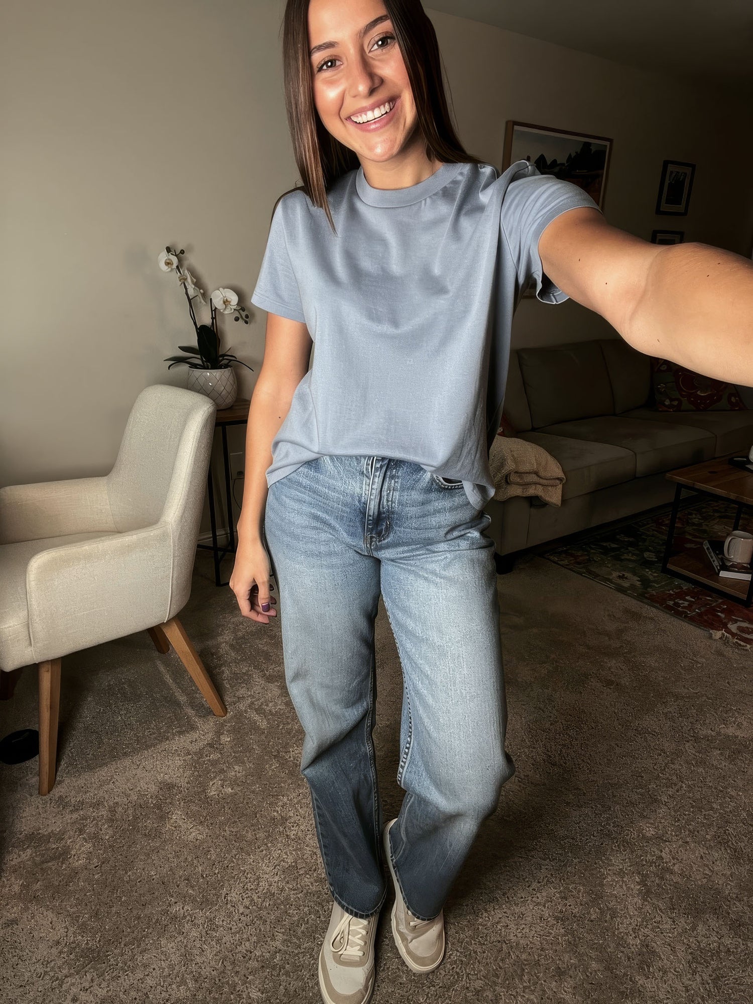 A relaxed silhouette meets refined simplicity. This look pairs a soft, oversized top with sleek, tailored bottoms for a balanced feel that’s both comfortable and polished. Finished with minimal sneakers, it’s an easy go-to for days when you want to look put together without overthinking it.